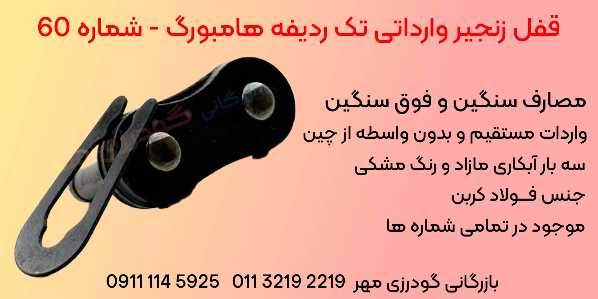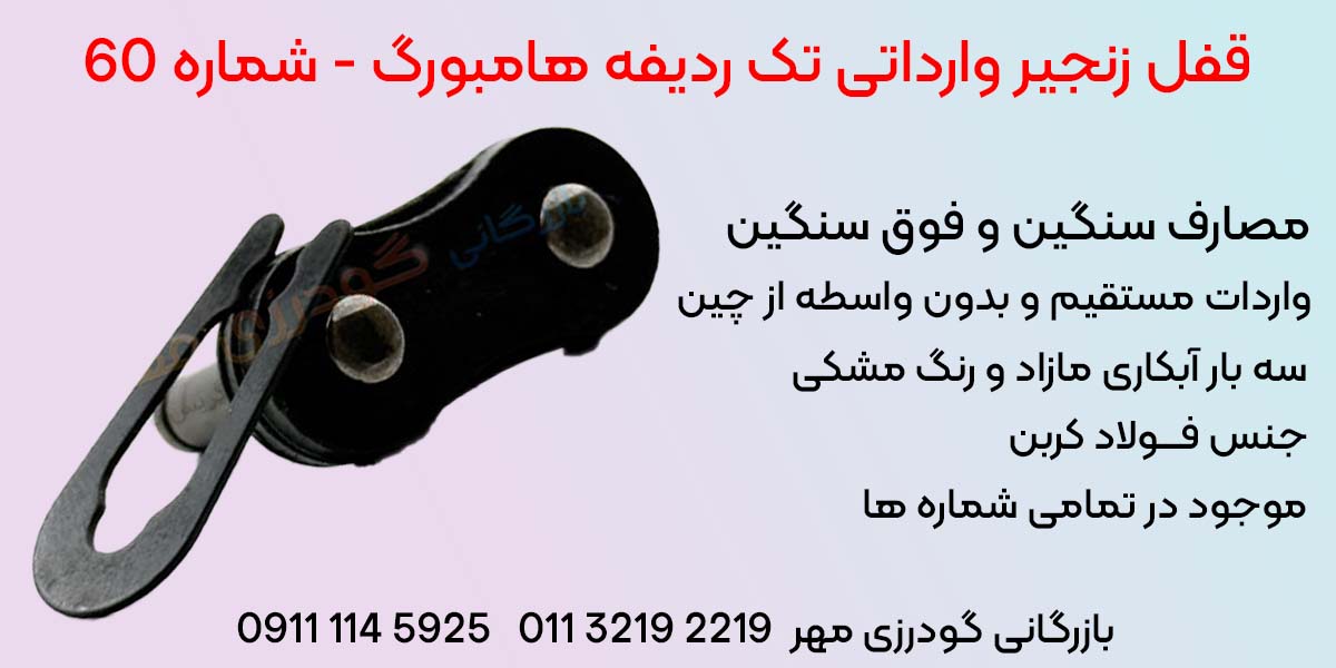 • موجودی کامل در انواع سایزها و مدل‌ها از جمله قفل زنجیر تک ردیفه 60